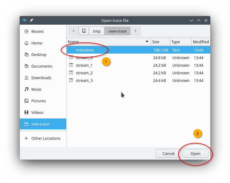 /tmp/new-trace. Afterwards, continue with a click to Open.#
