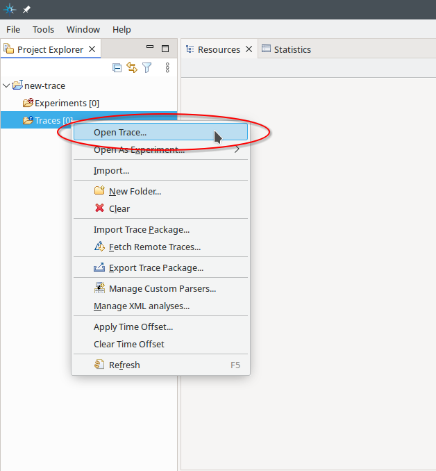 Fig. 12.3 Open the context menu of the Traces [0] folder and select Open Trace….#